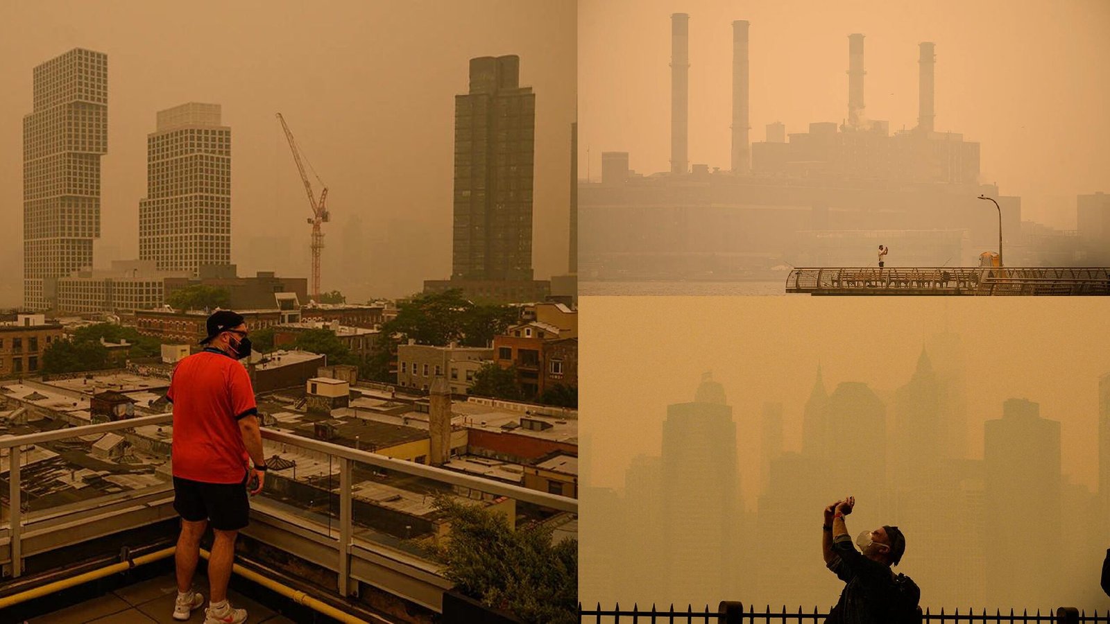 In New York, orange smoke covered the skyline and made it hard to see sites like the Statue of Liberty.