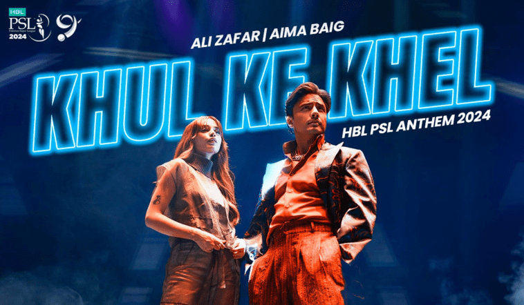 The official anthem for the ninth season of the Pakistan Super League (PSL 9), which stars Ali Zafar and Aima Baig, was unveiled on Wednesday by the Pakistan Cricket Board (PCB). It is called “Khul Ke Khel”.