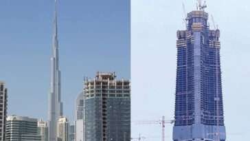 The Jeddah Tower, also called the Kingdom Tower, is being built in Saudi Arabia and will soon be taller than the Burj Khalifa.