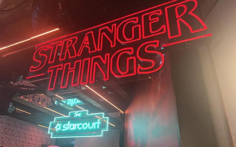 Located at Tokyo’s Pronto Shibuya coffee shop, the themed experience includes a set recreation of the Byers’ living room, featuring the now-iconic wall of letters and Christmas lights, as well as a Scoops Ahoy counter, complete with Starcourt neon signage. Visitors can also pose with the front end of a Surfer Boy pizza van.